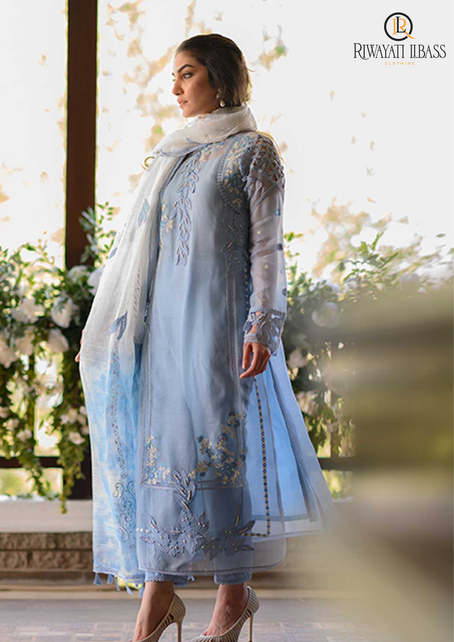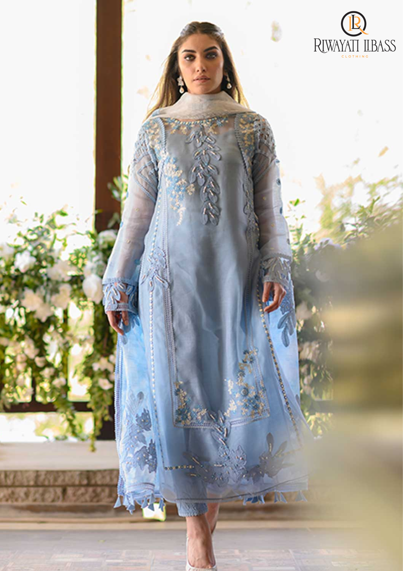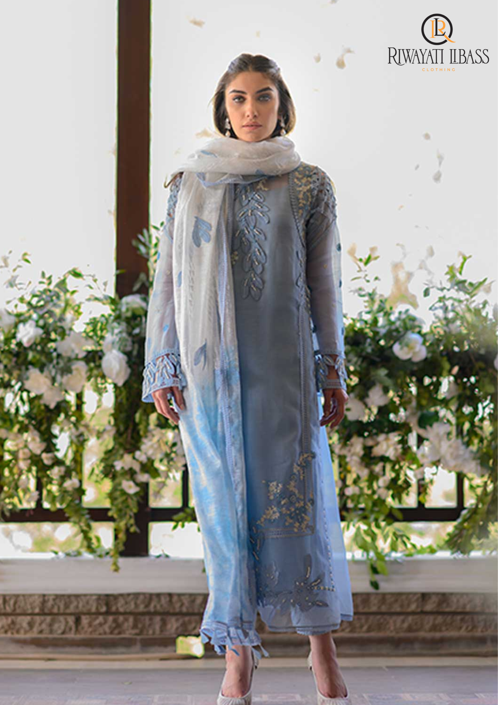 Summer Unstitched 3PCs Embroidered Organza Dress With Organza Duppata RL-196