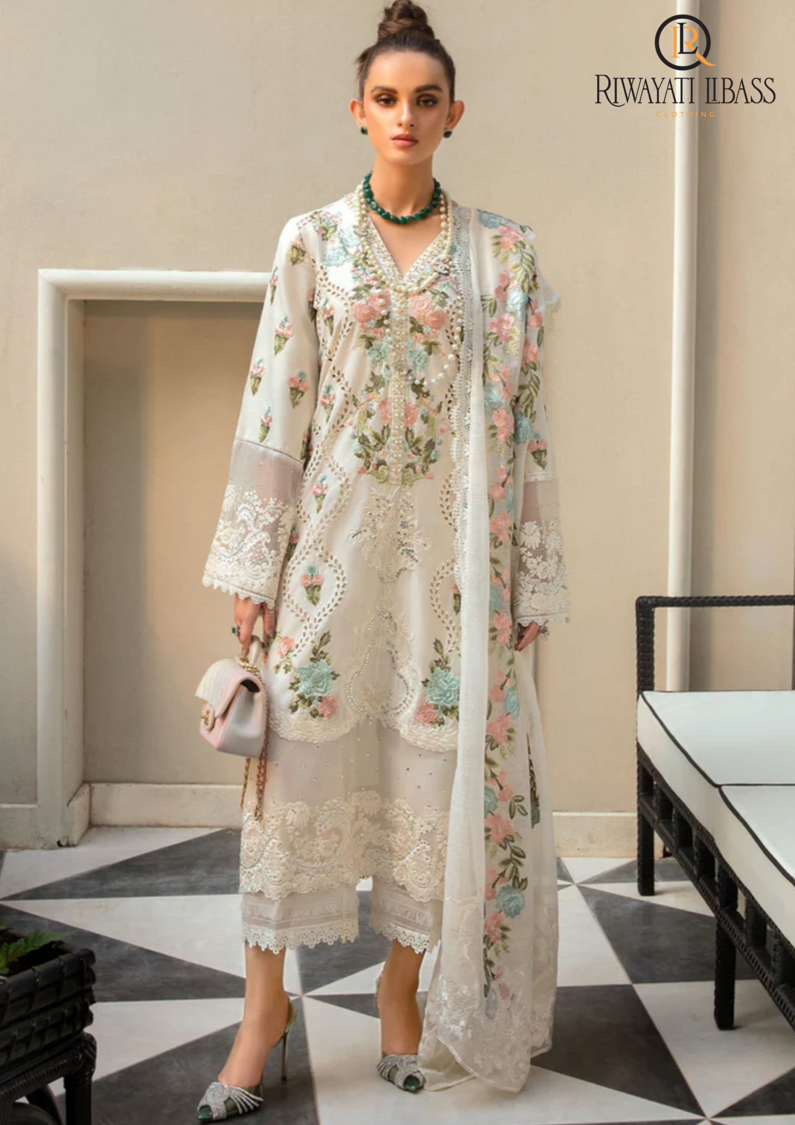 Summer Unstitched 3PC Lawn Embroidered Shirt With Chiffon Dupatta RL-117