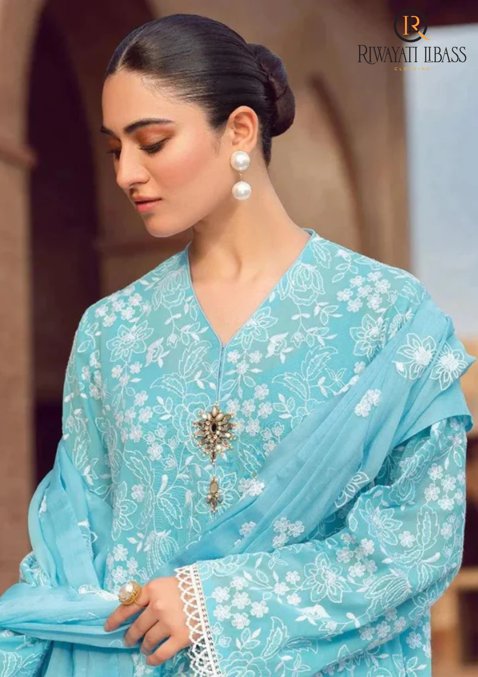 Summer Unstitched 3PC Lawn Embroidered Shirt With Chiffon Dupatta RL-124