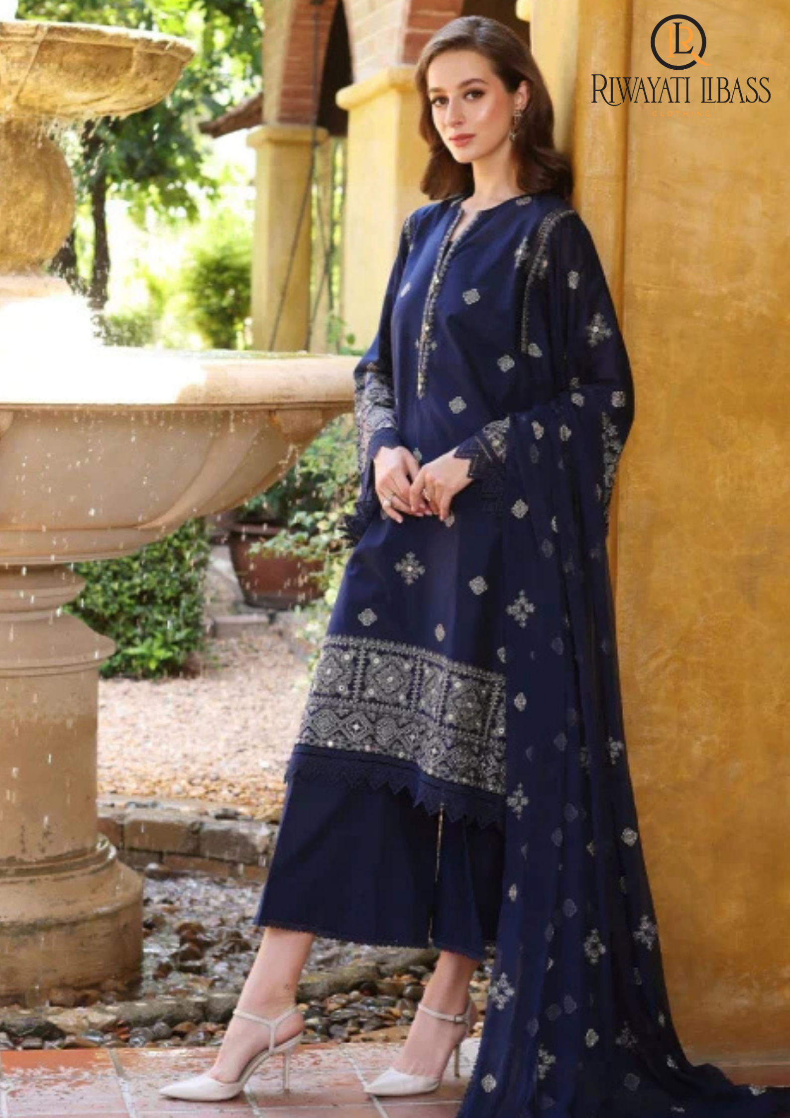 Summer Unstitched 3PC Lawn Embroidered Shirt With Chiffon Dupatta RL-129