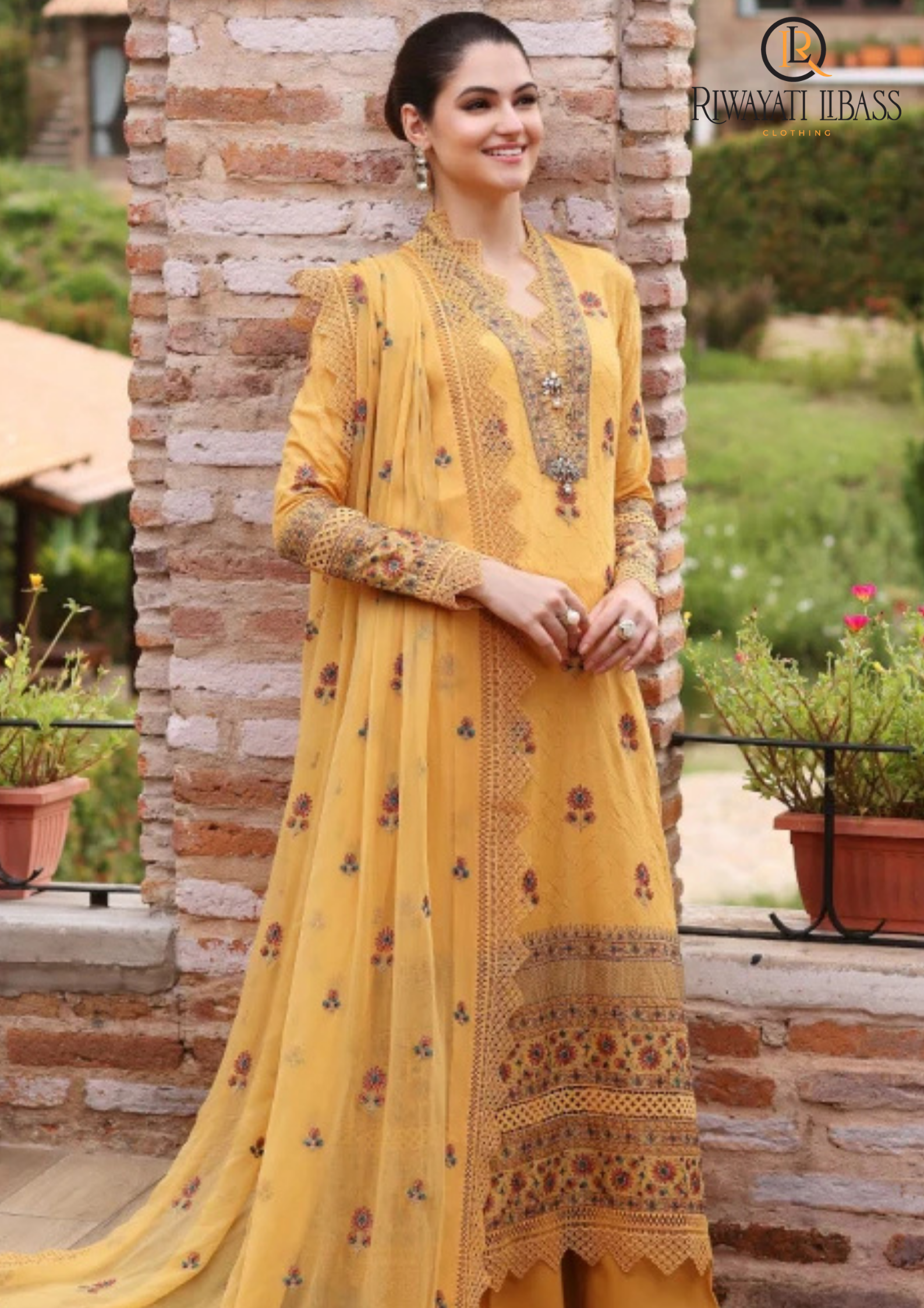 Summer Unstitched 3PC Lawn Embroidered Shirt With Chiffon Dupatta RL-132