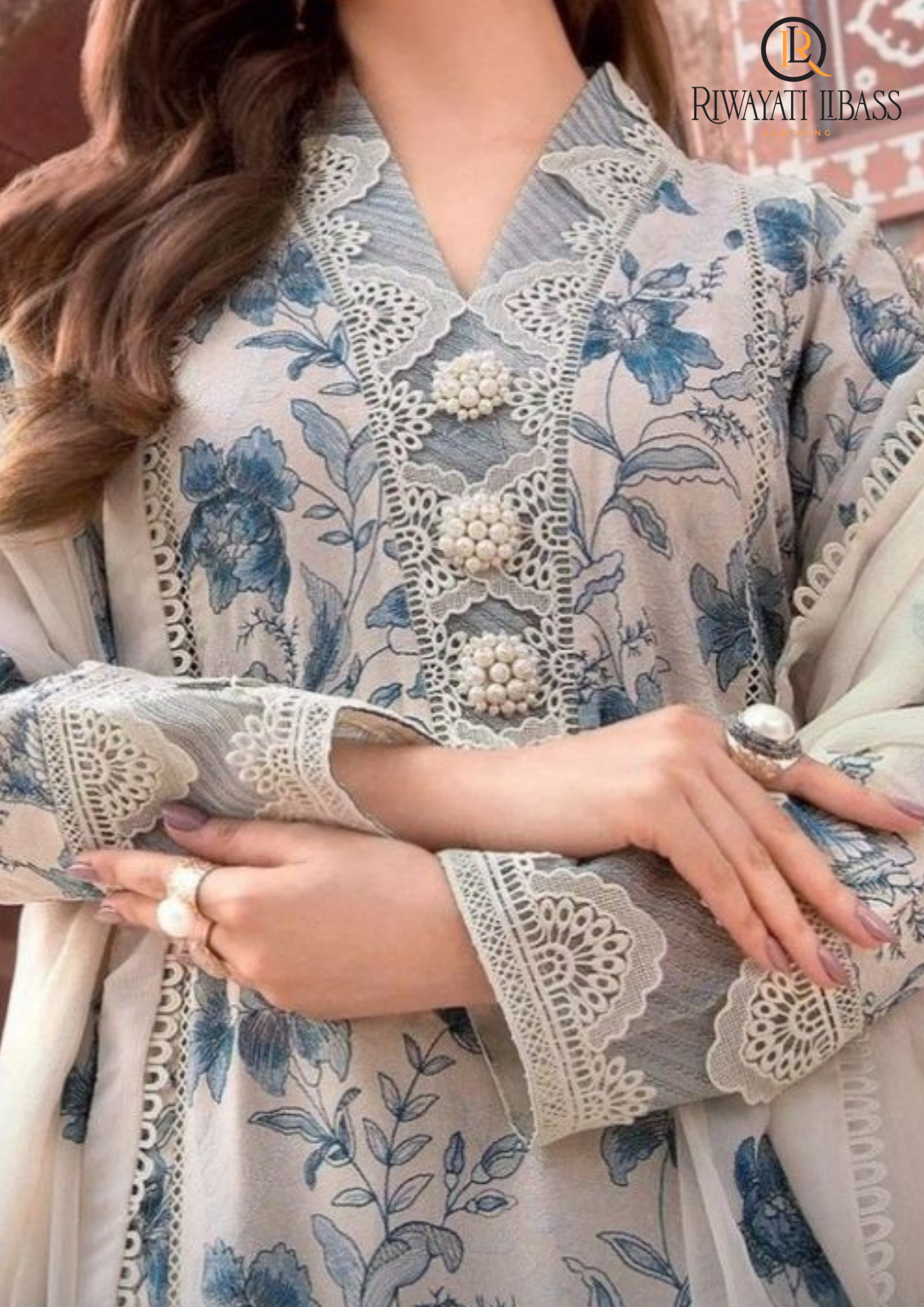 Summer Unstitched 3PC Lawn Embroidered Shirt With Chiffon Dupatta RL-160
