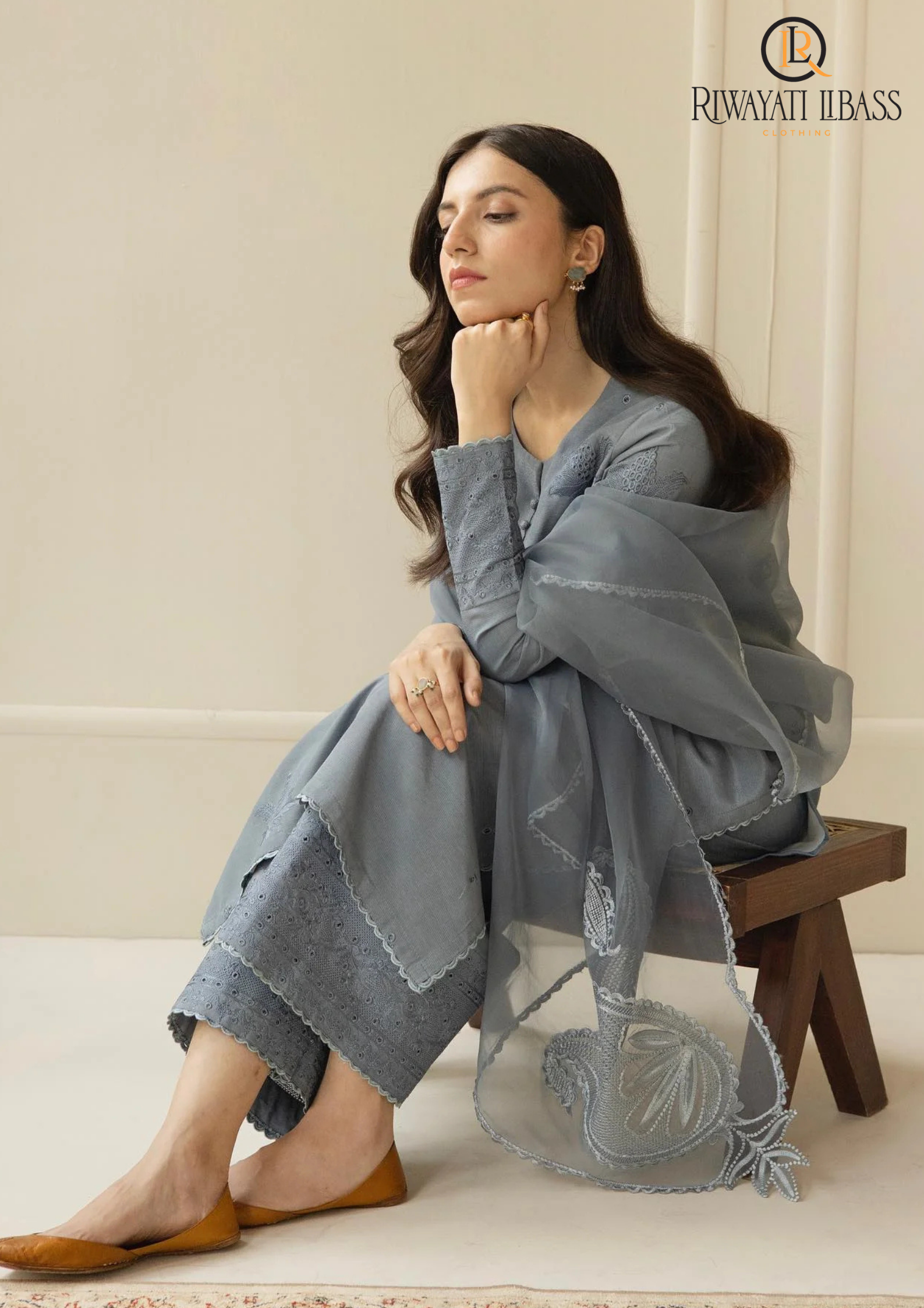 Summer Unstitched 3PC Lawn Embroidered Shirt With Organza Dupatta RL-140