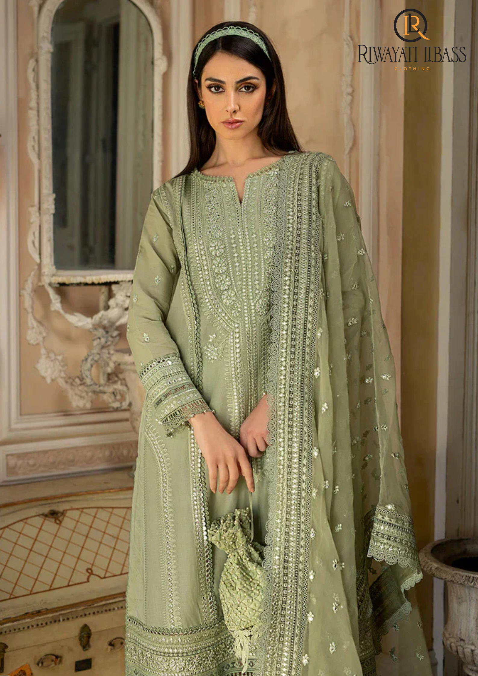 Summer Unstitched 3PC Lawn Embroidered Shirt With Organza Dupatta RL-152