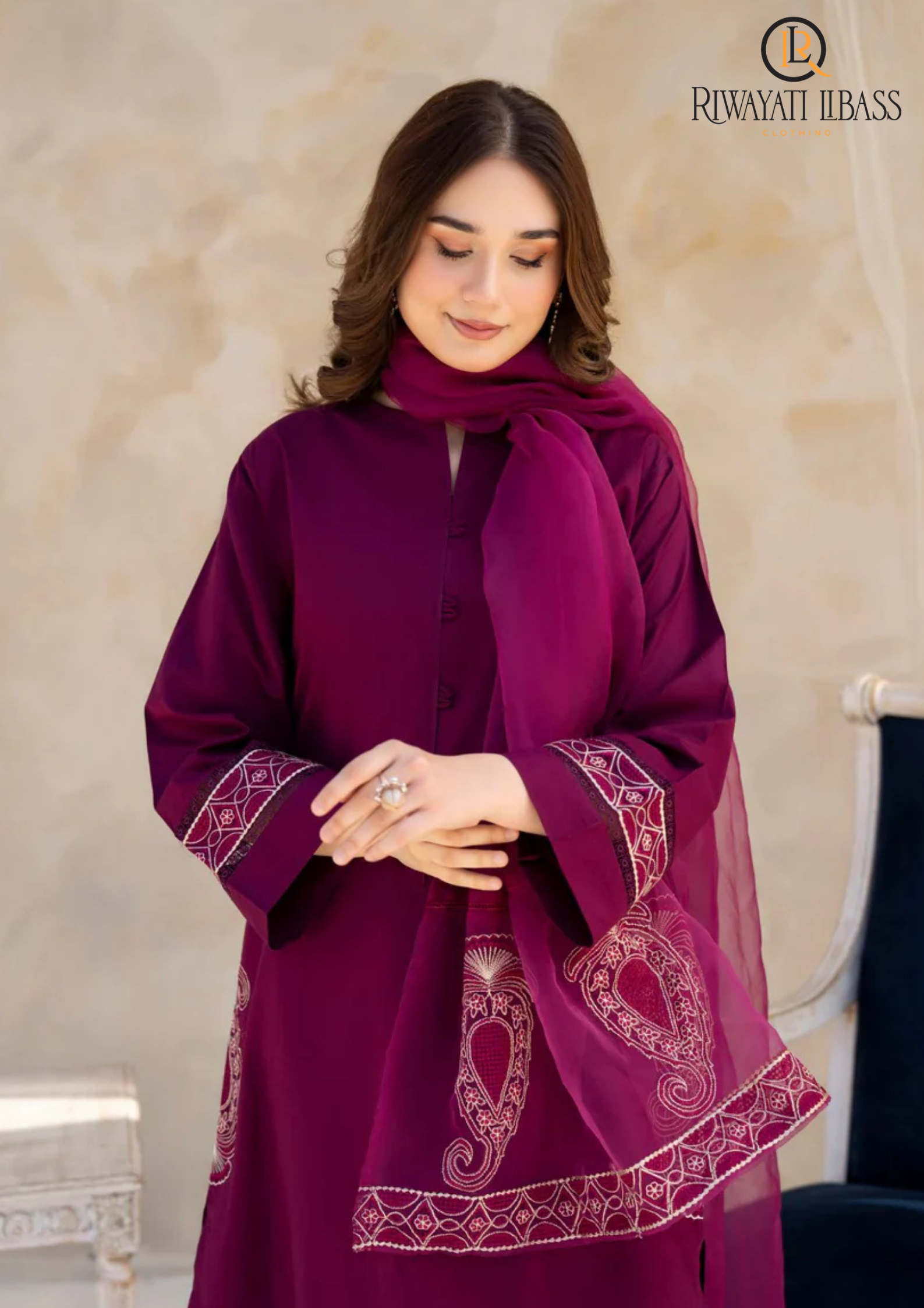Summer Unstitched 3PC Lawn Embroidered Shirt With Organza Dupatta RL-159
