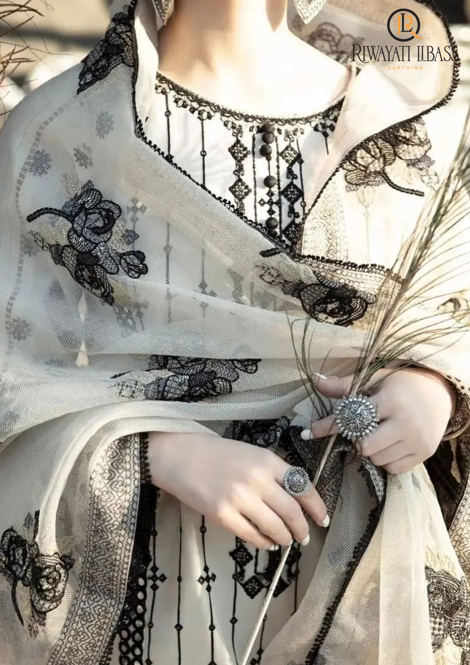 Summer Unstitched 3PC Lawn Embroidered Shirt With Organza Dupatta RL-103