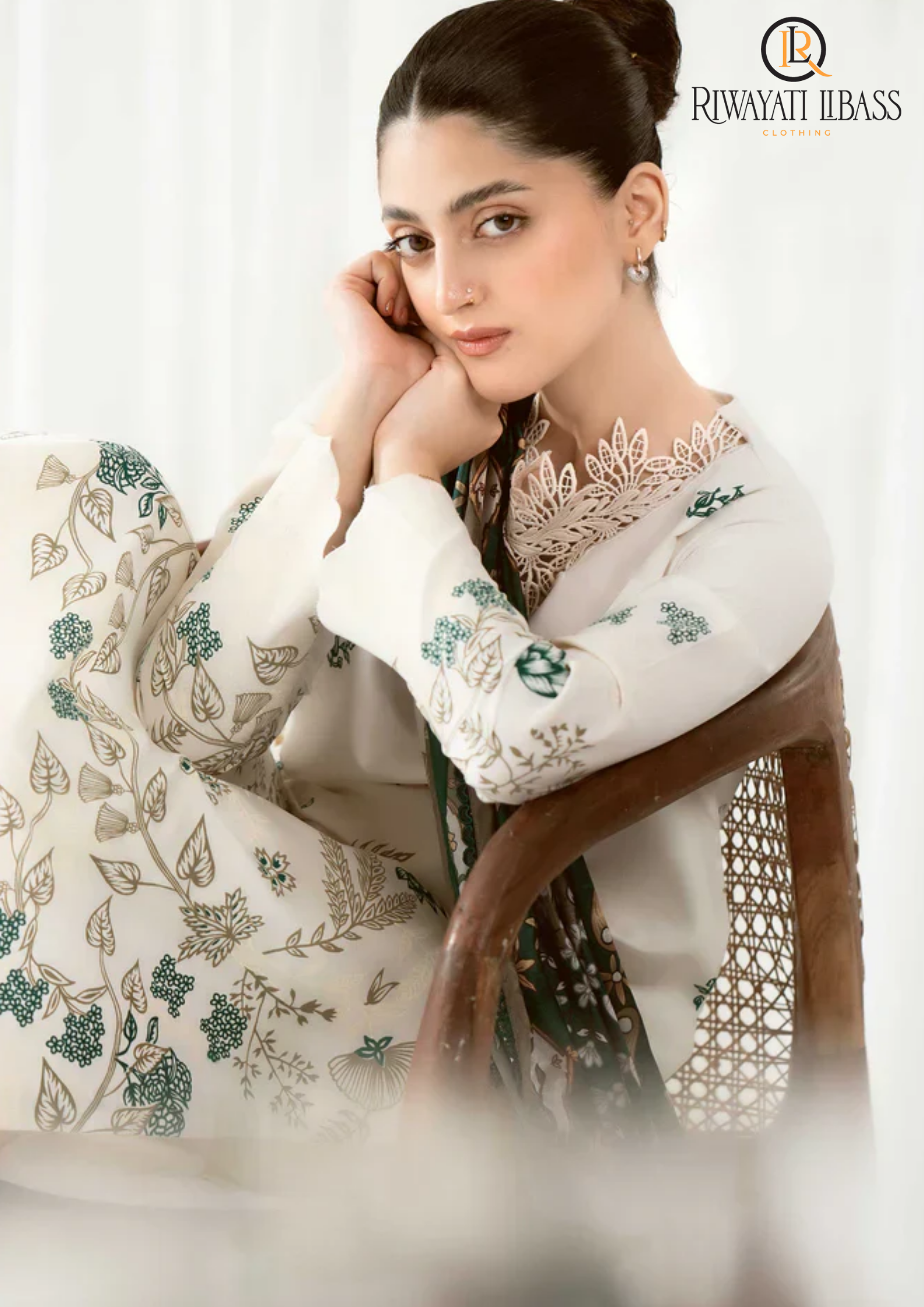 Summer Unstitched 3PC Lawn Embroidered Shirt With Silk Dupatta RL-148