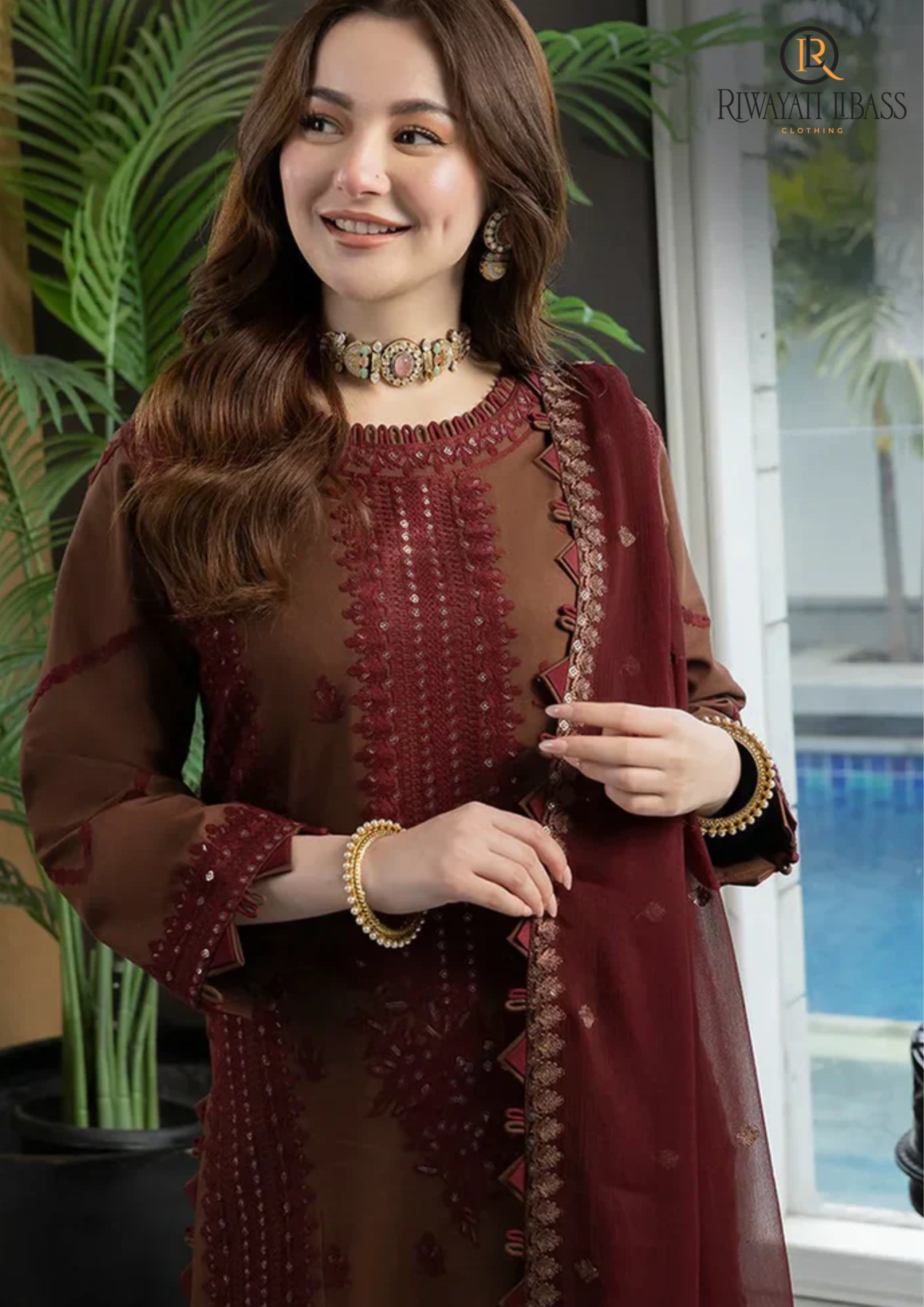 Summer Unstitched 3PCs Embroidered Lawn Dress With Chiffon Dupatta RL-237