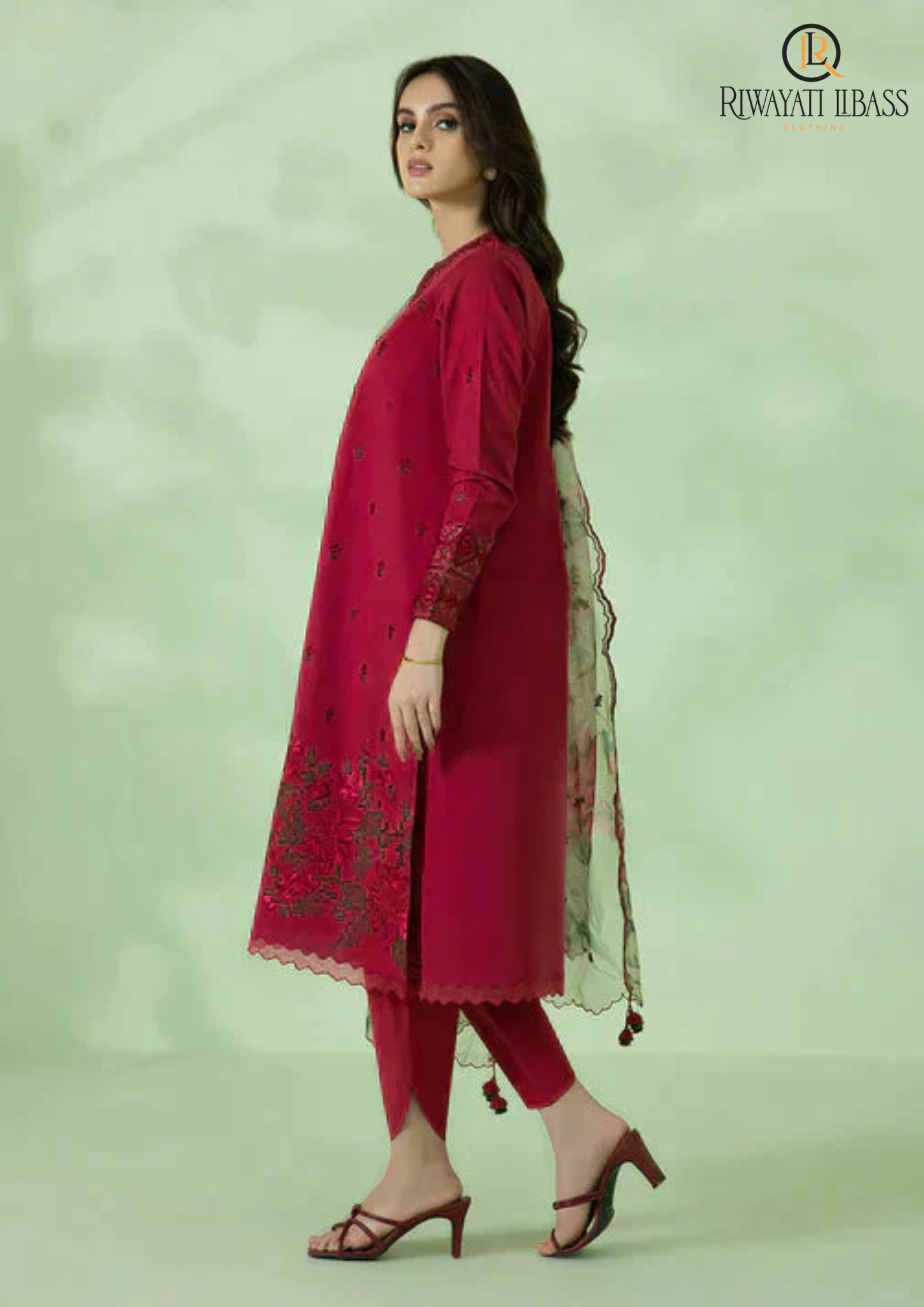 Summer Unstitched 3PCs Embroidered Lawn Dress With Diamond Monar Dupatta RL-260