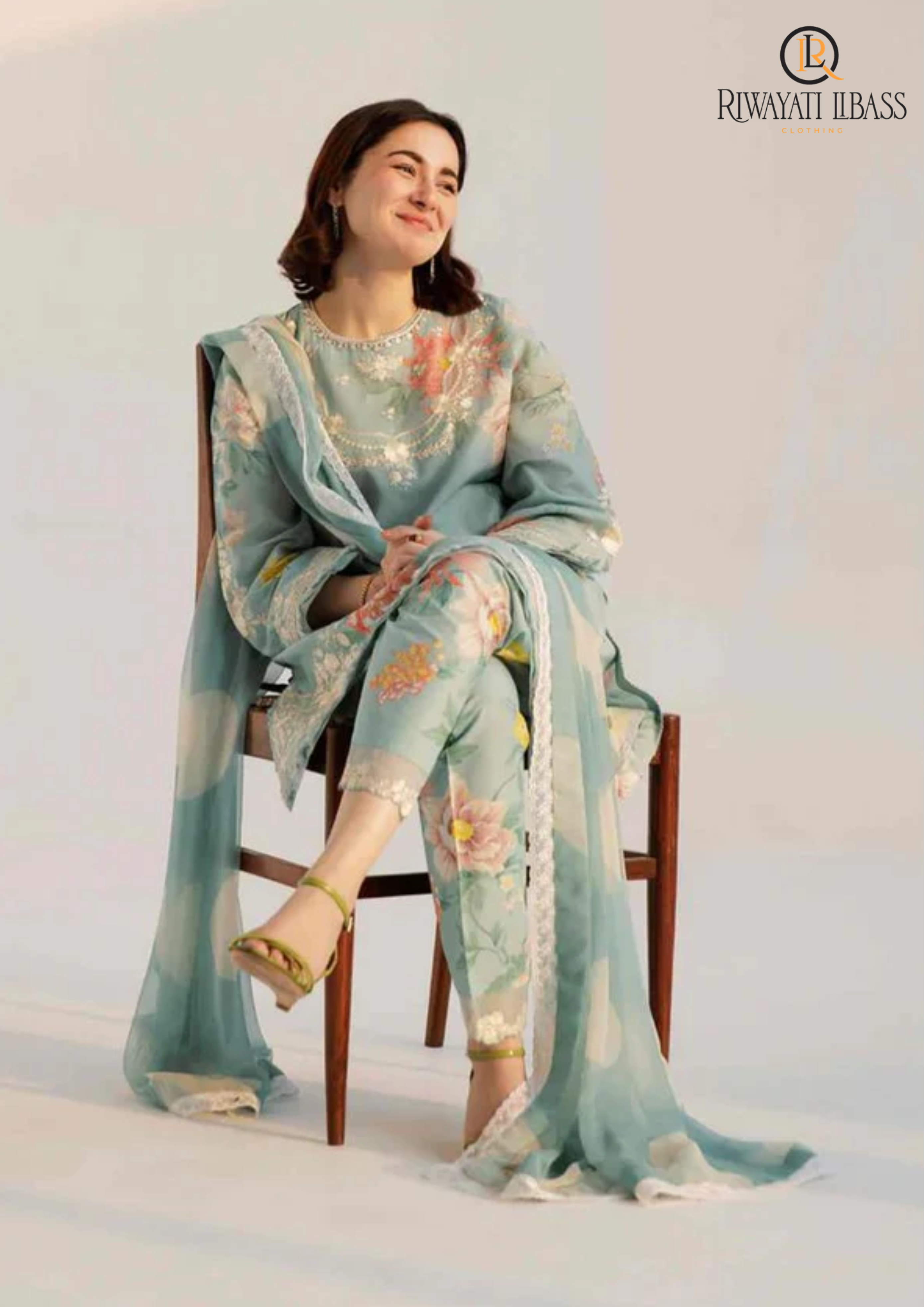 Summer Unstitched 3PCs Embroidered Lawn Dress With Digital Printed Chiffon Dupatta RL-238