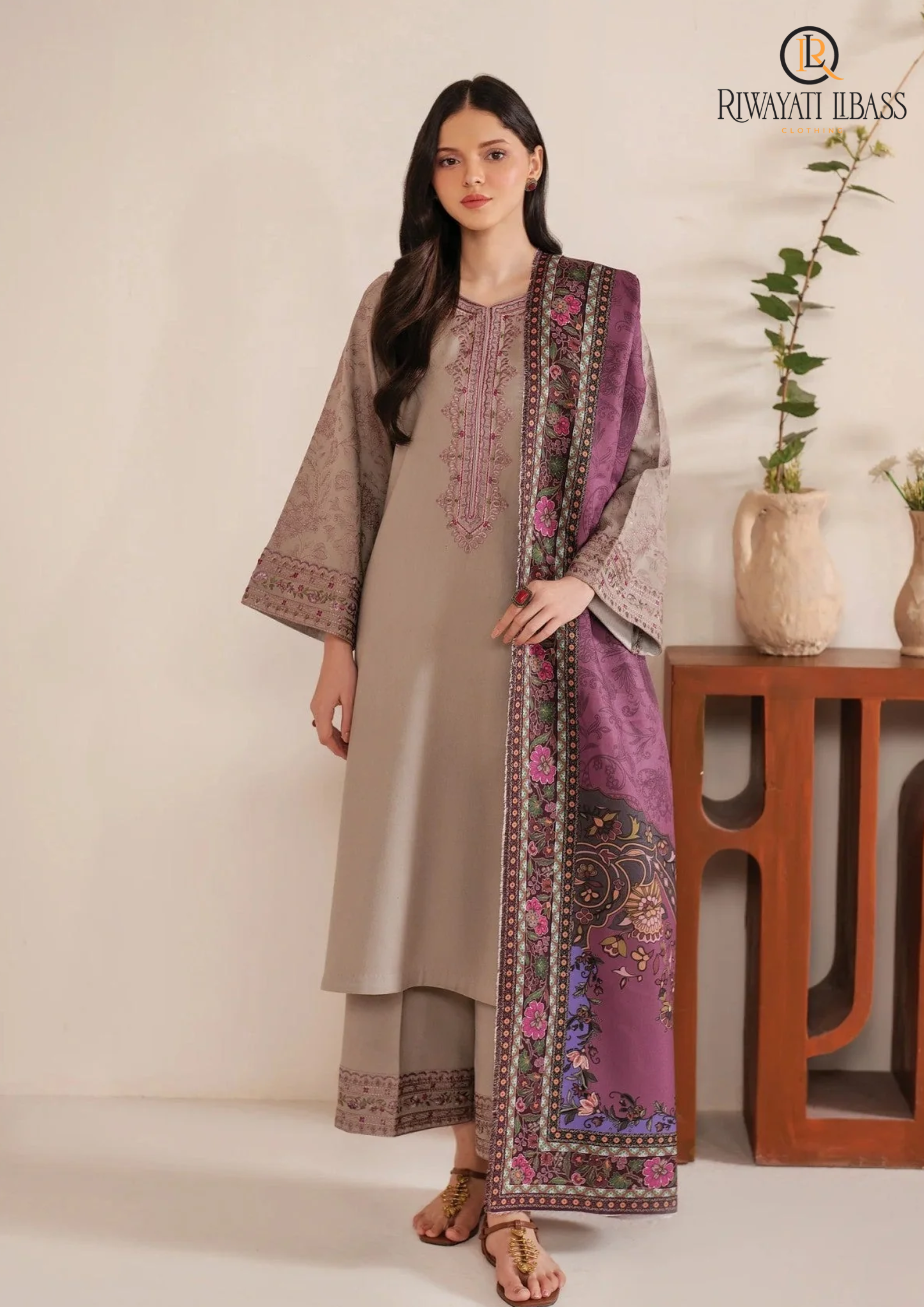 Summer Unstitched 3PCs Embroidered Lawn Dress With Printed Monar Dupatta RL-240