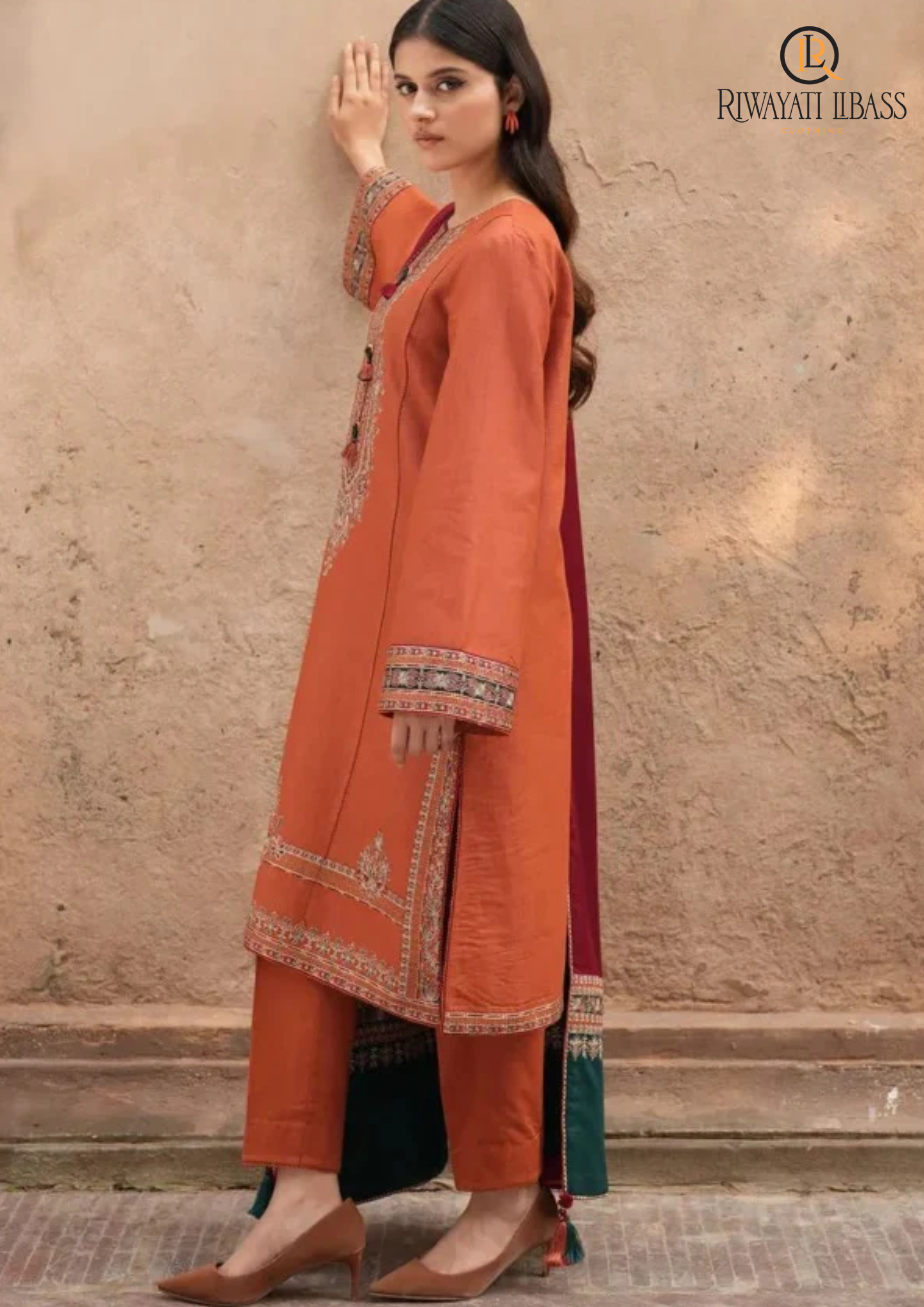 Summer Unstitched 3PCs Embroidered Lawn Dress With Printed Monar Dupatta RL-246