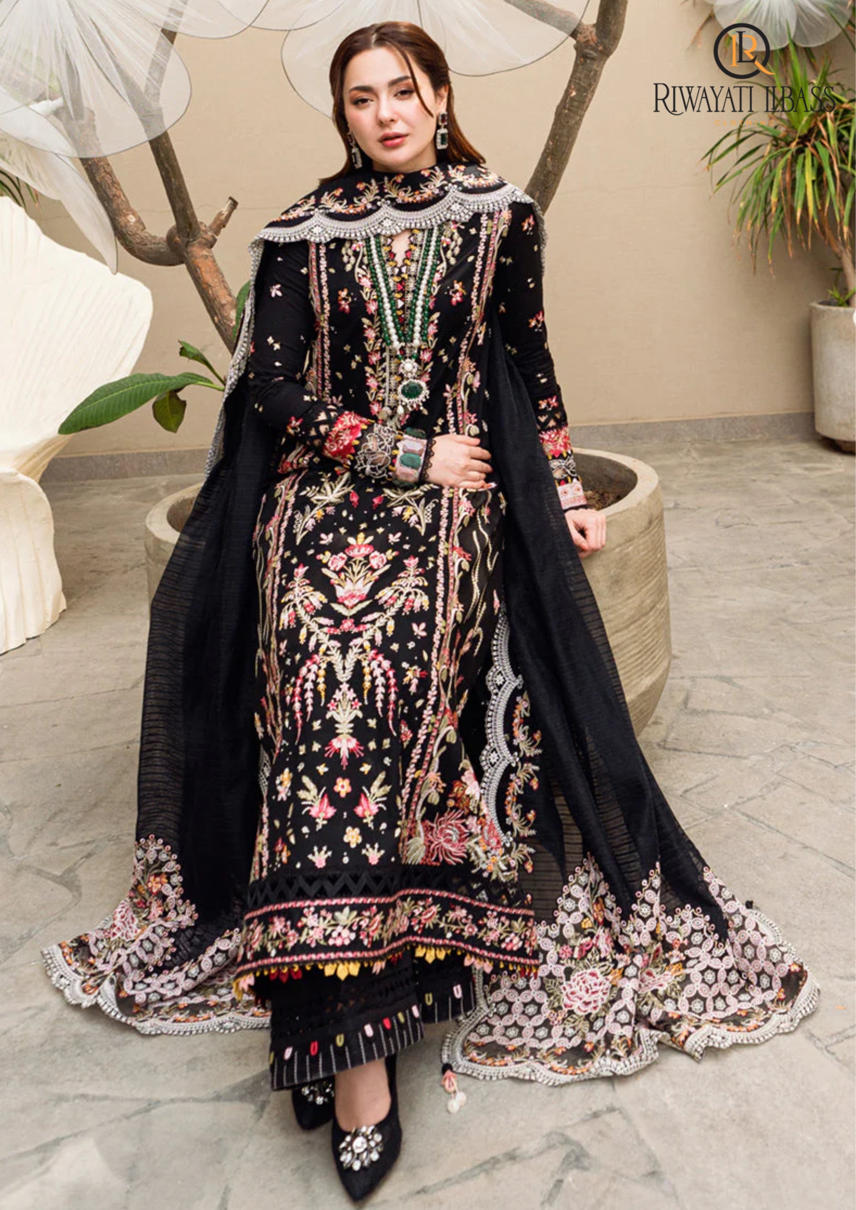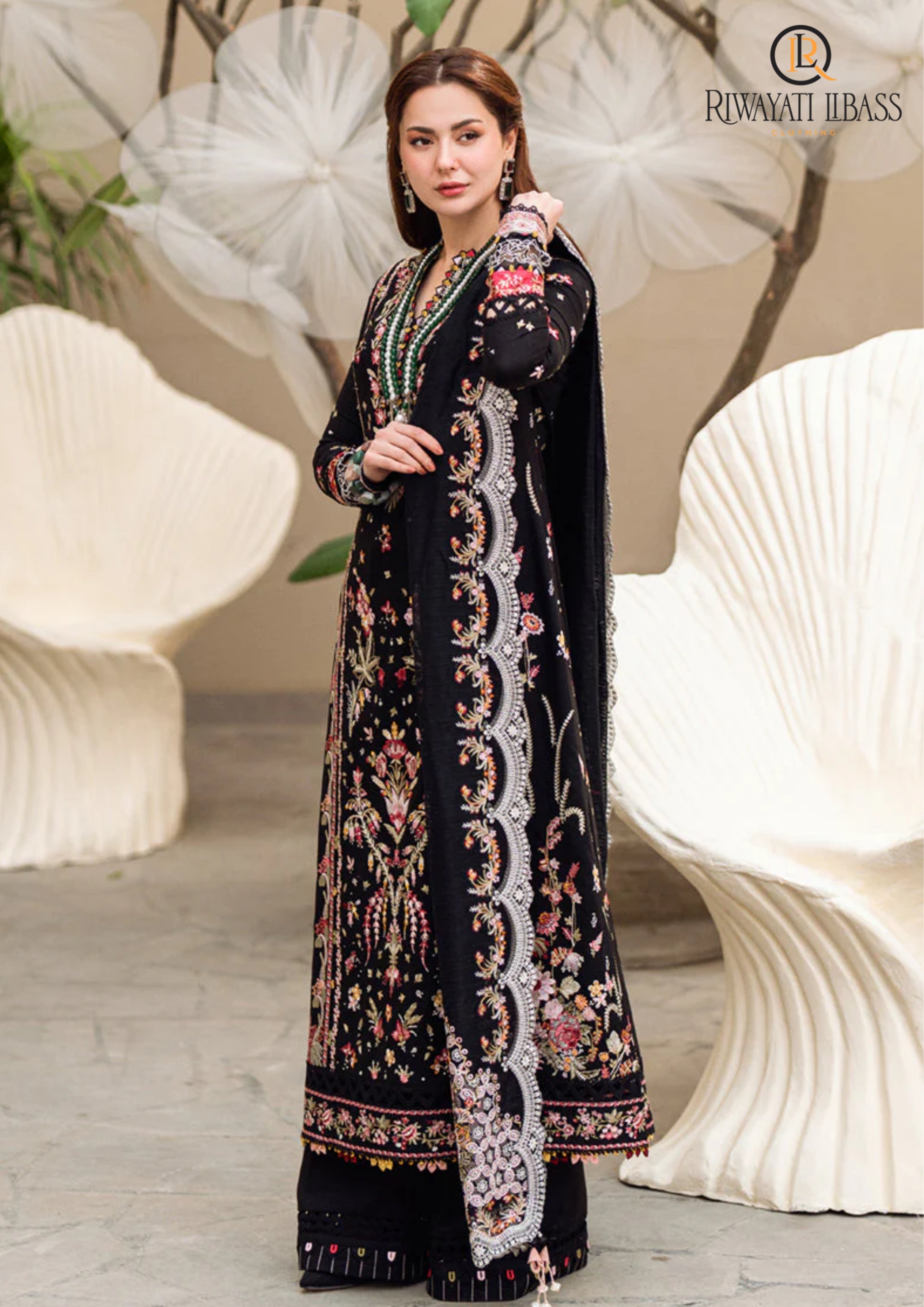 Summer Unstitched 3PCs Heavy Embroidered Lawn Dress With Embroidered Khaddi Net Dupatta RL-313