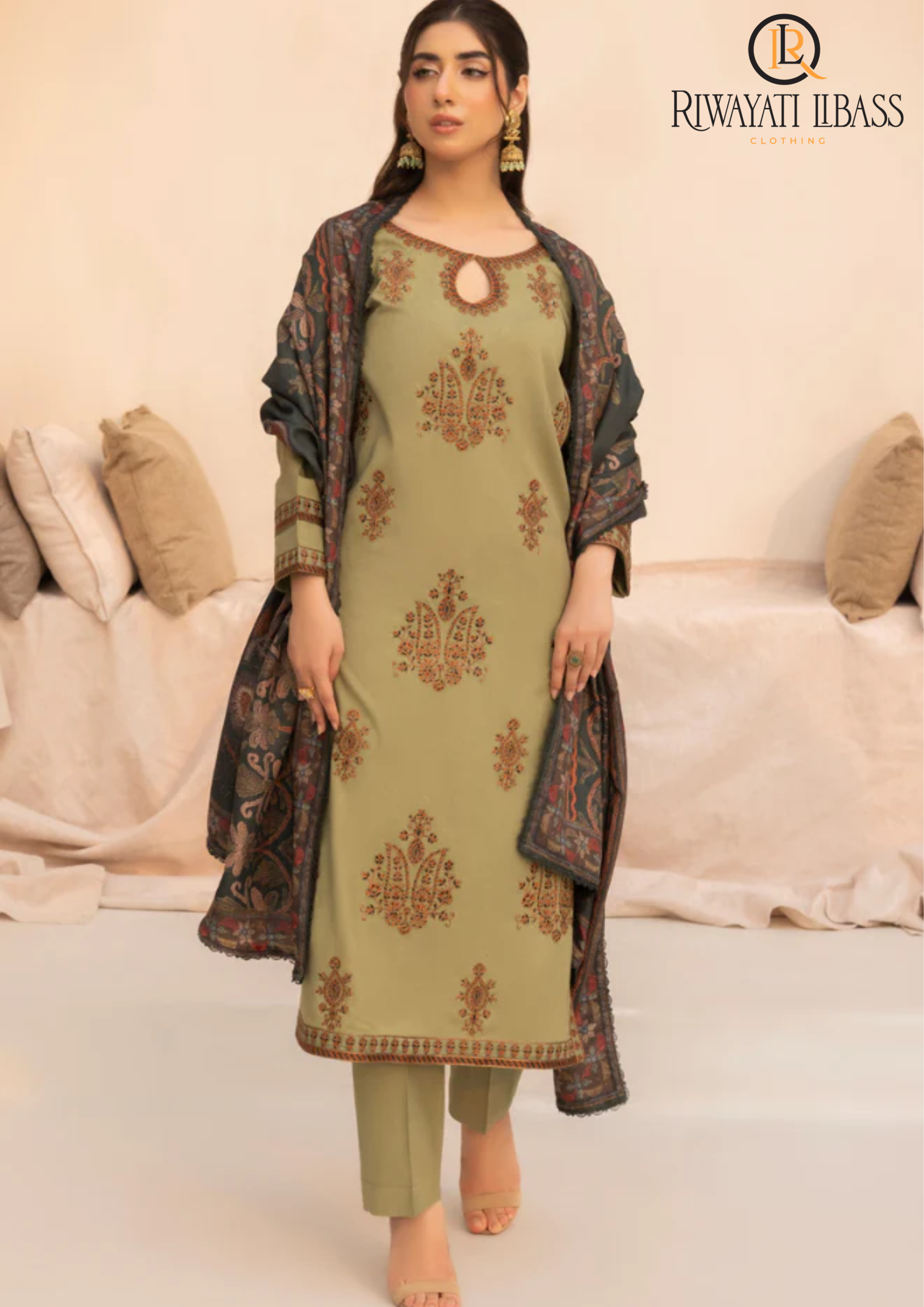 Summer Unstitched 3PCs Lawn Embroidered Dress With Diamond Dupatta RL-300