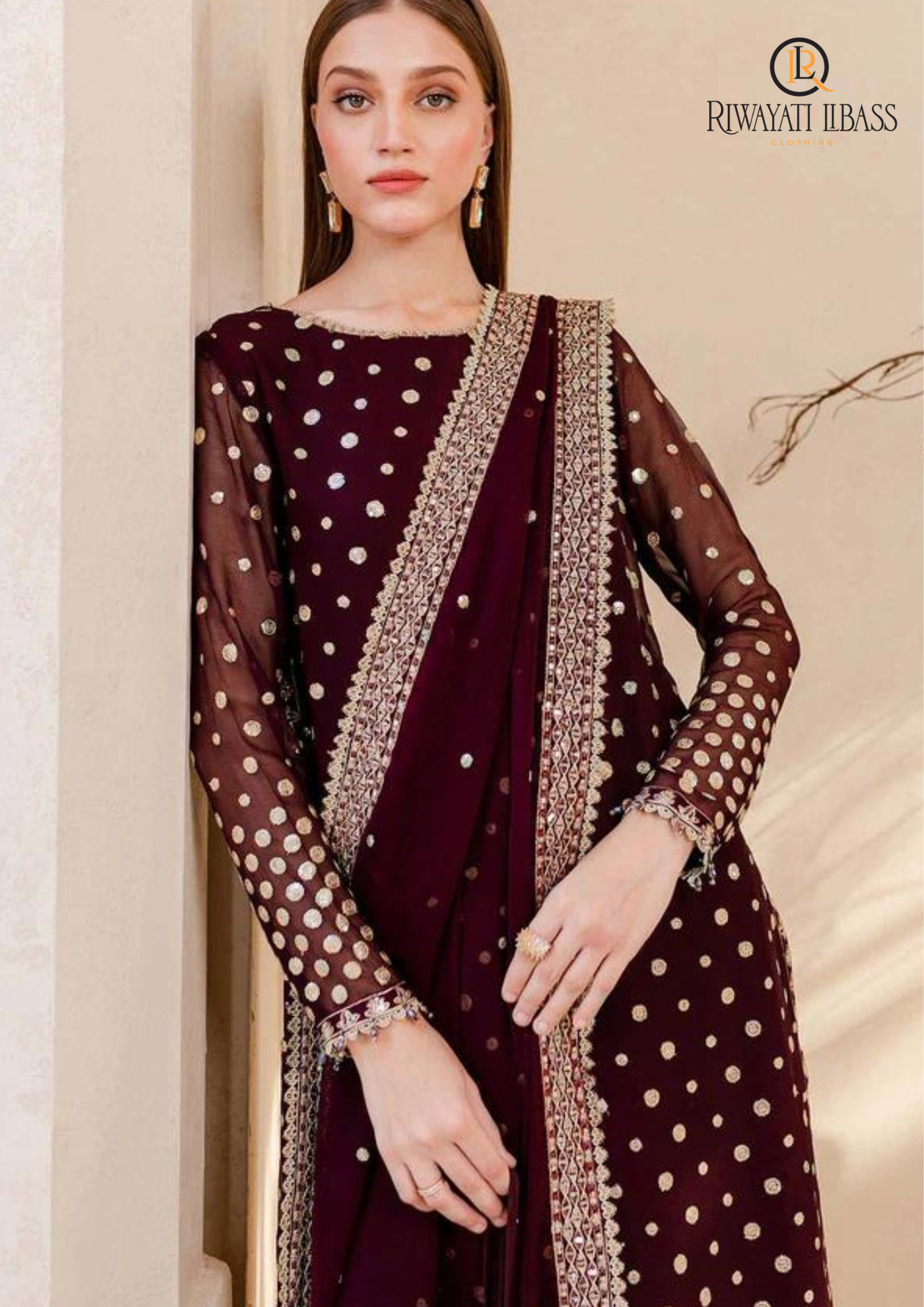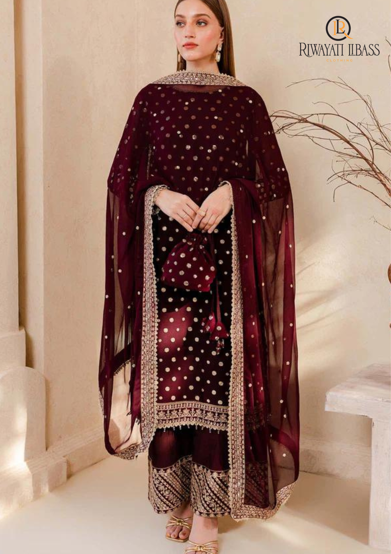 Unstitched 3PCs Embroidered Velvet Dress With Embroidered Organza Dupatta RL-553