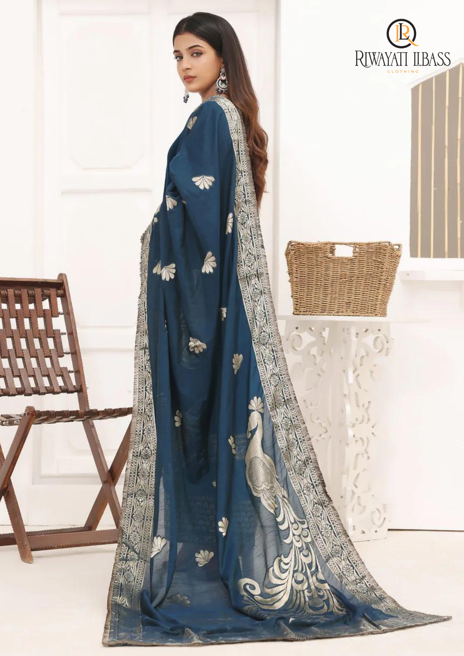 Unstitched 3PCs Embroidered Velvet Dress With Printed Organza Brosha Dupatta RL-569