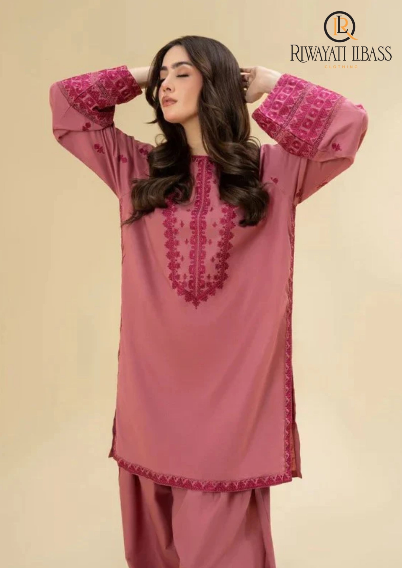Winter Unstitched 2PCs Embroidered Dhanak Dress