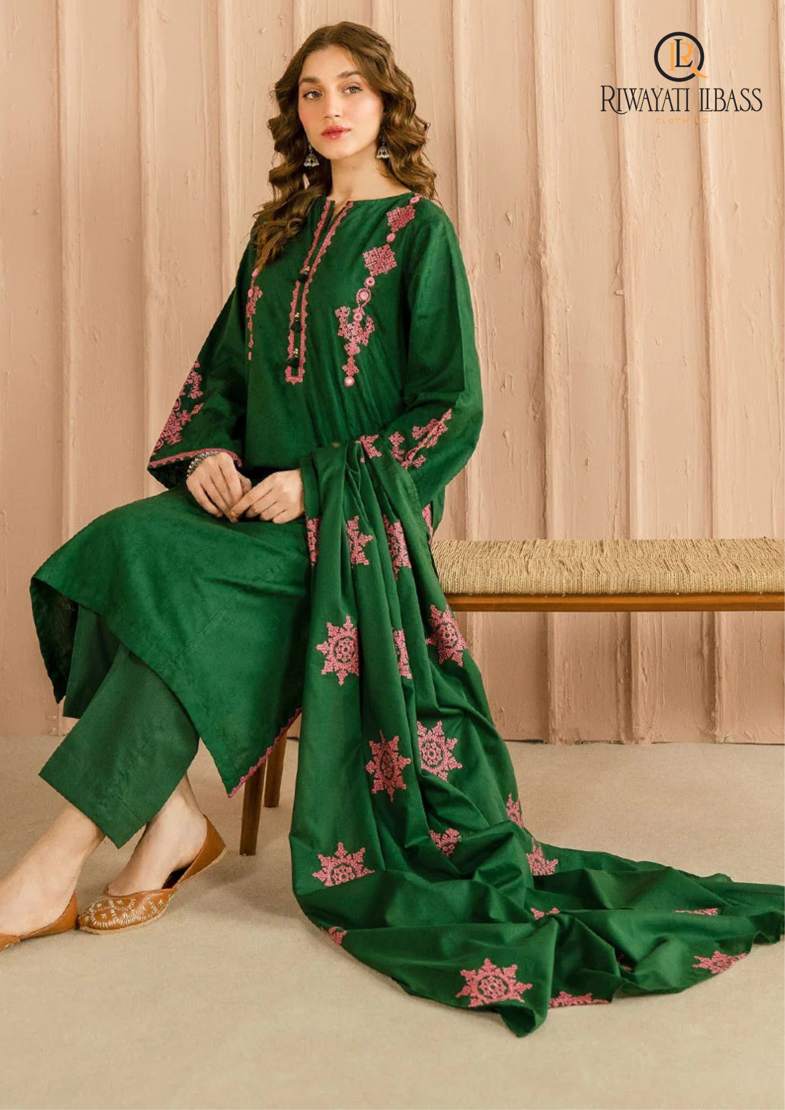 Summer Unstitched 3PCs Lawn Embroidered Dress With Lawn Embroidered Dupatta RL-210
