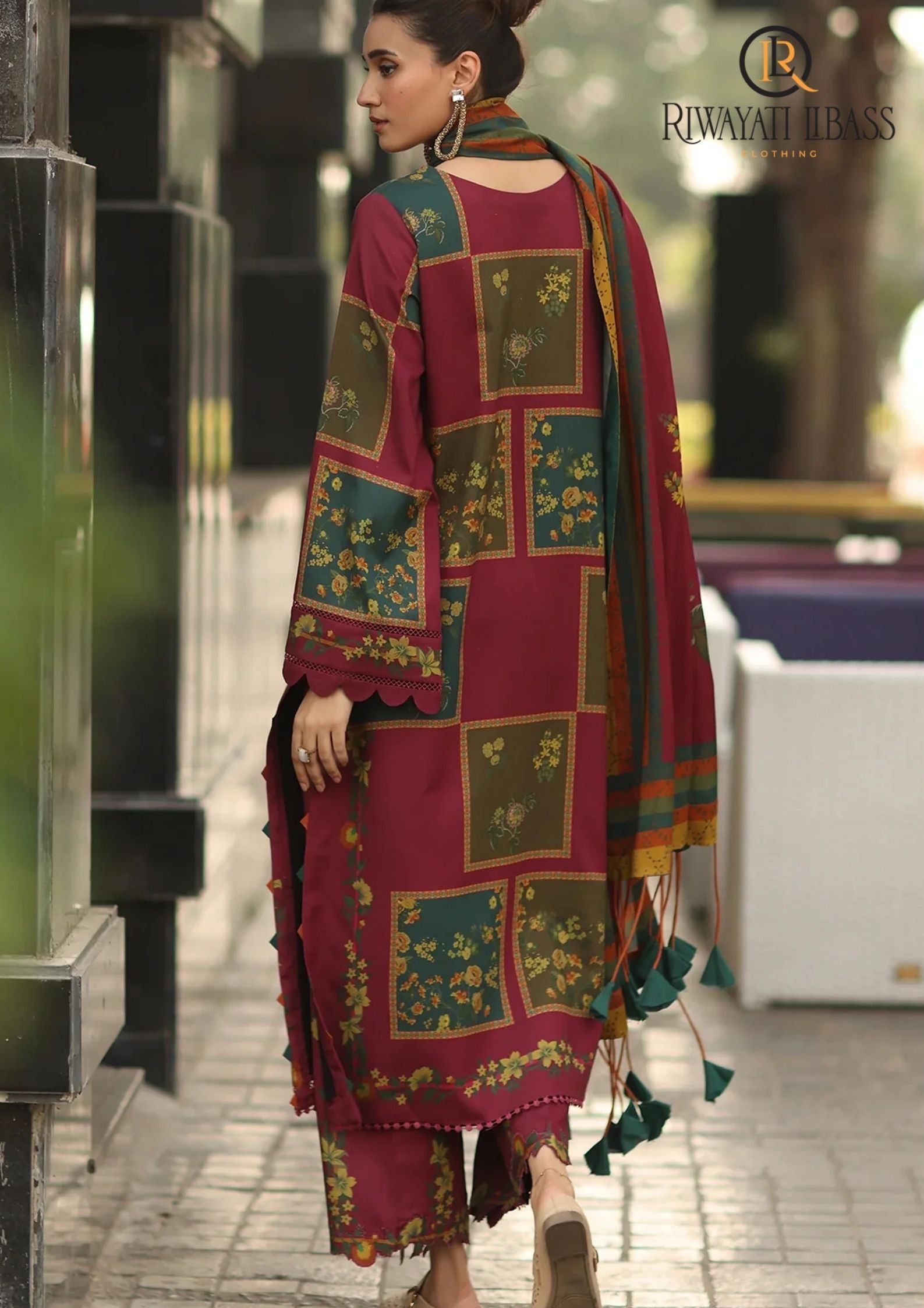 Winter Unstitched 3PCs Digital Printed Karandi Dress With Digital Printed Karandi Shawl RL-710