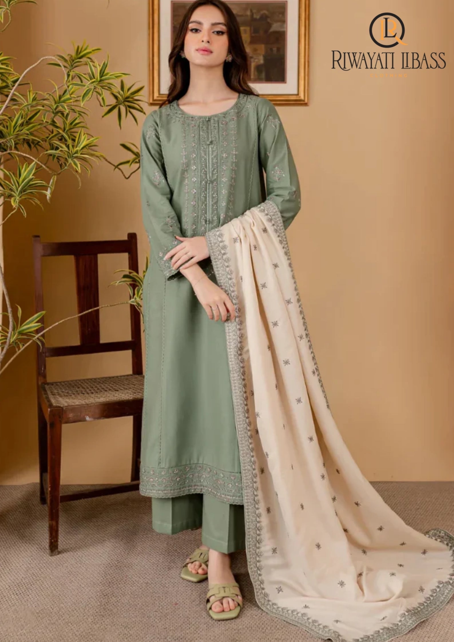 Winter Unstitched 3PCs Embroidered Dhanak Dress