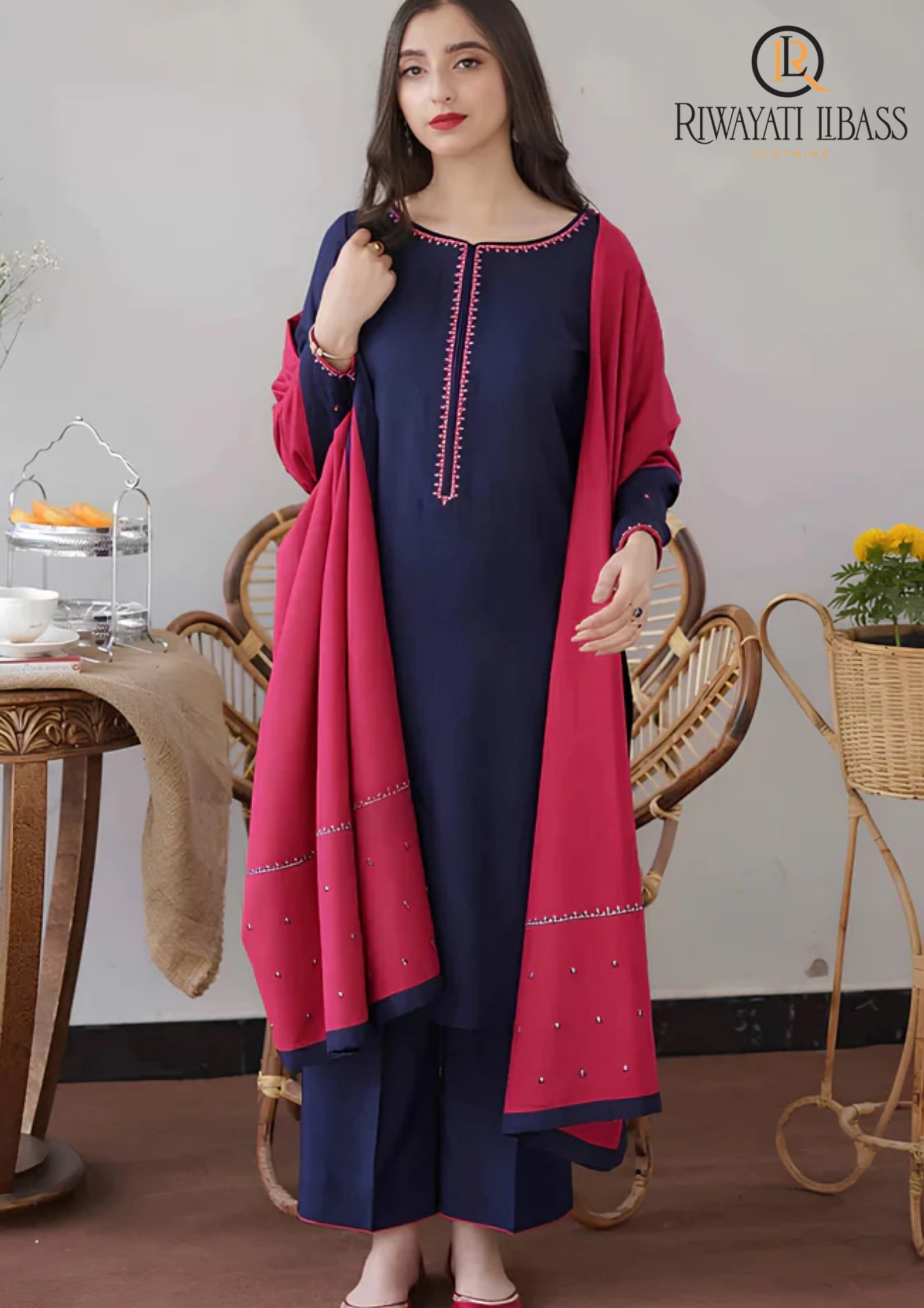 Winter Unstitched 3PCs Embroidered Dhanak Dress