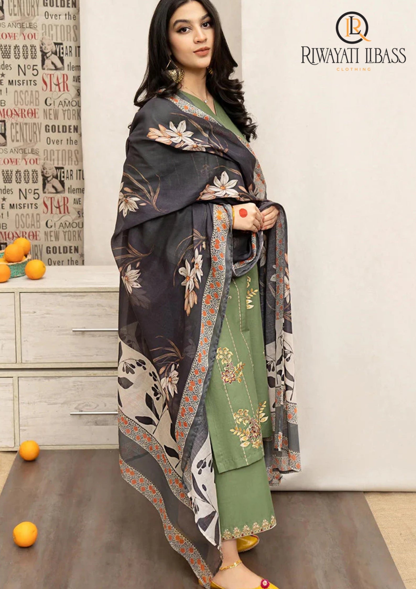 Winter Unstitched 3PCs Embroidered Dhanak Dress With Digital Printed Karandi Shawl RL-518