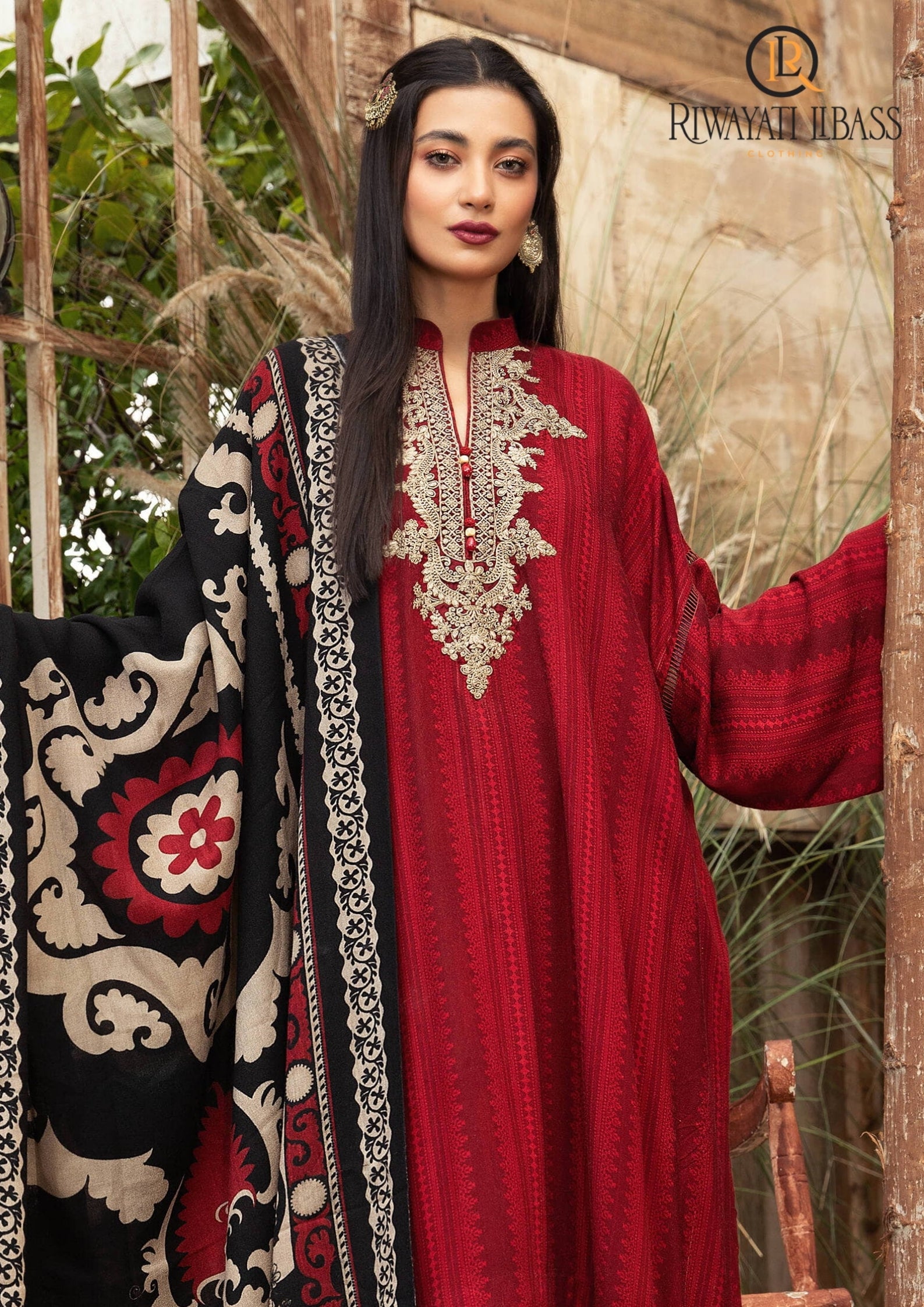 Winter Unstitched 3PCs Embroidered Dhanak Dress With Digital Printed Karandi Shawl RL-613