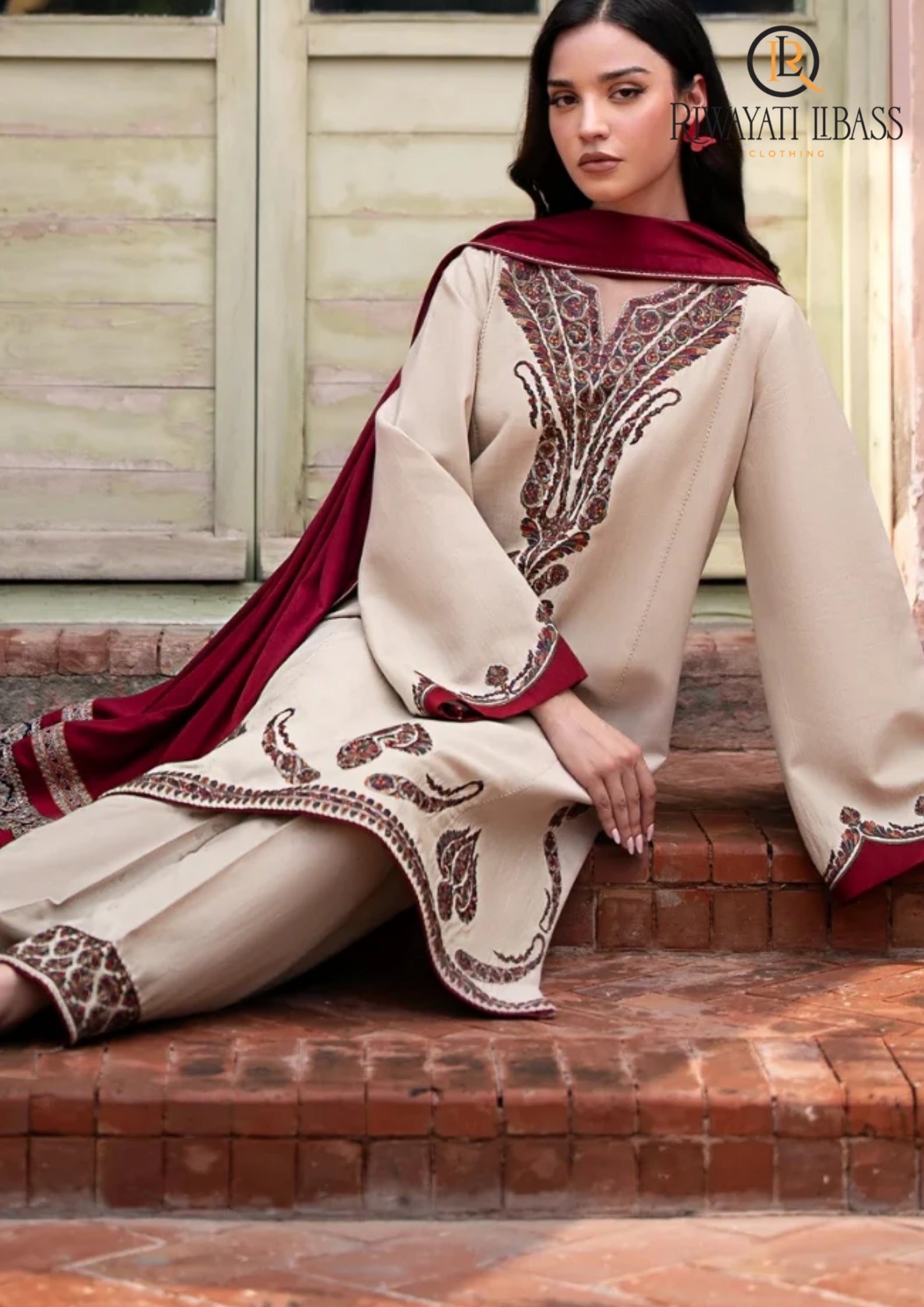 Winter Unstitched 3PCs Embroidered Dhanak Dress With Digital Printed Karandi Shawl RL-659