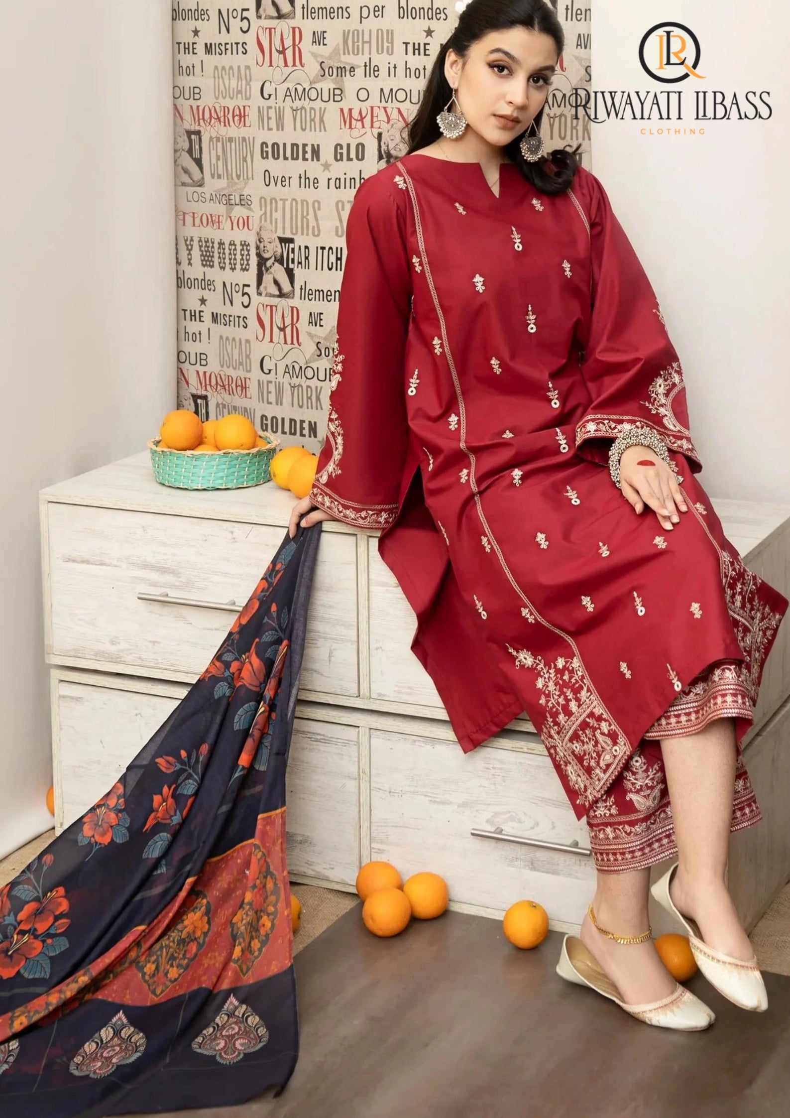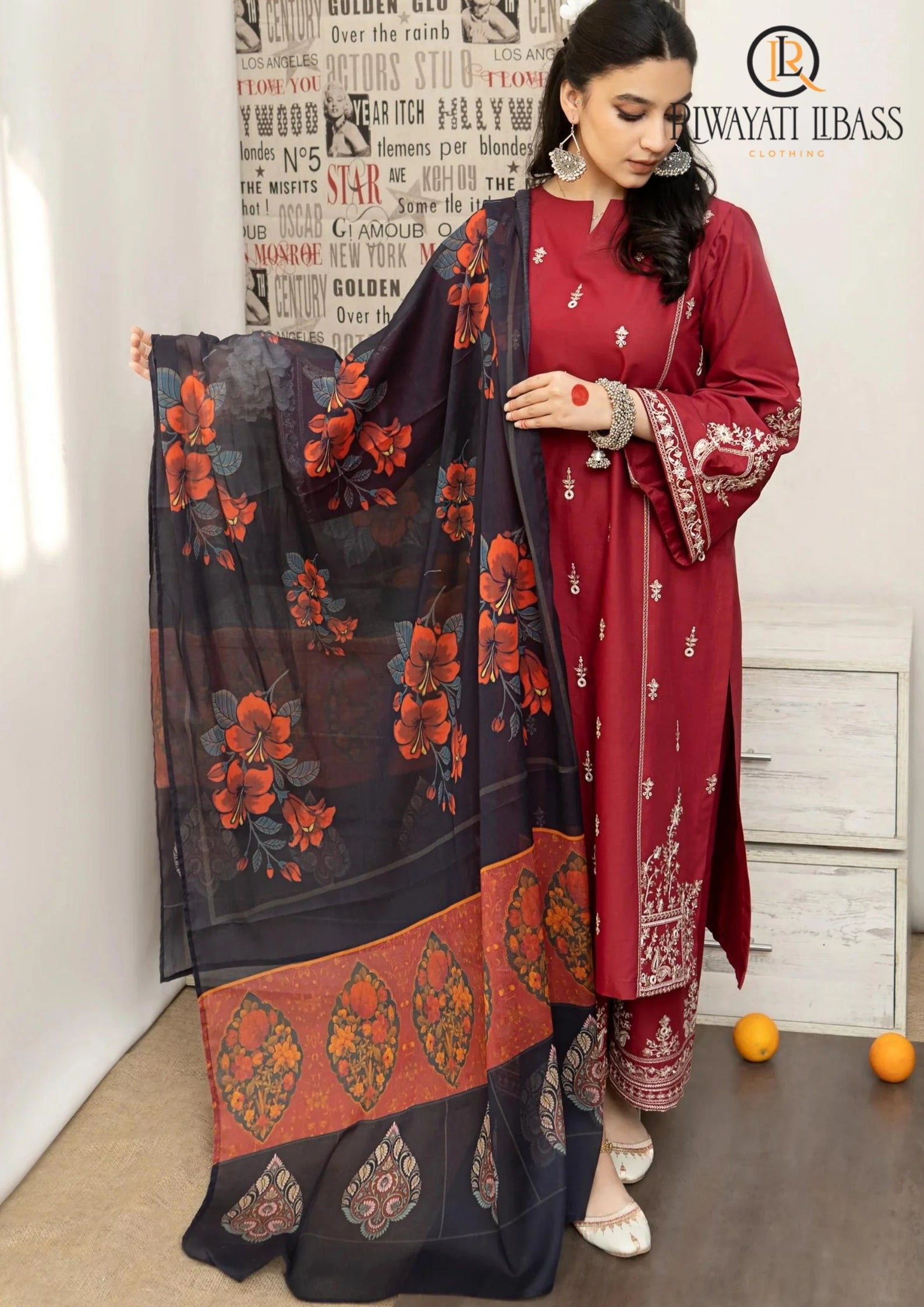 Winter Unstitched 3PCs Embroidered Dhanak Dress With Digital Printed Karandi Shawl RL-651