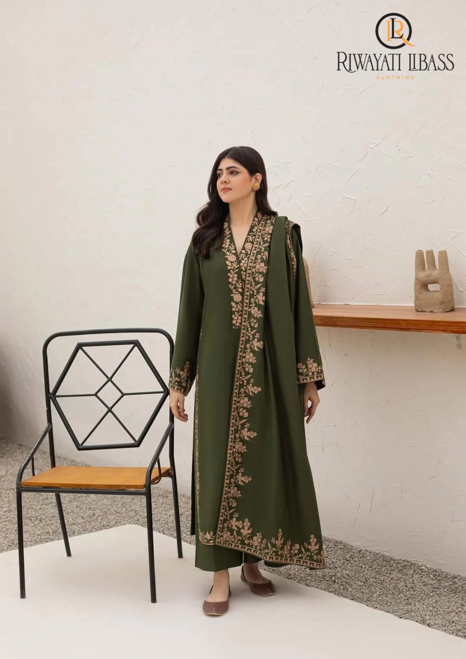 Winter Unstitched 3PCs Embroidered Dhanak Dress