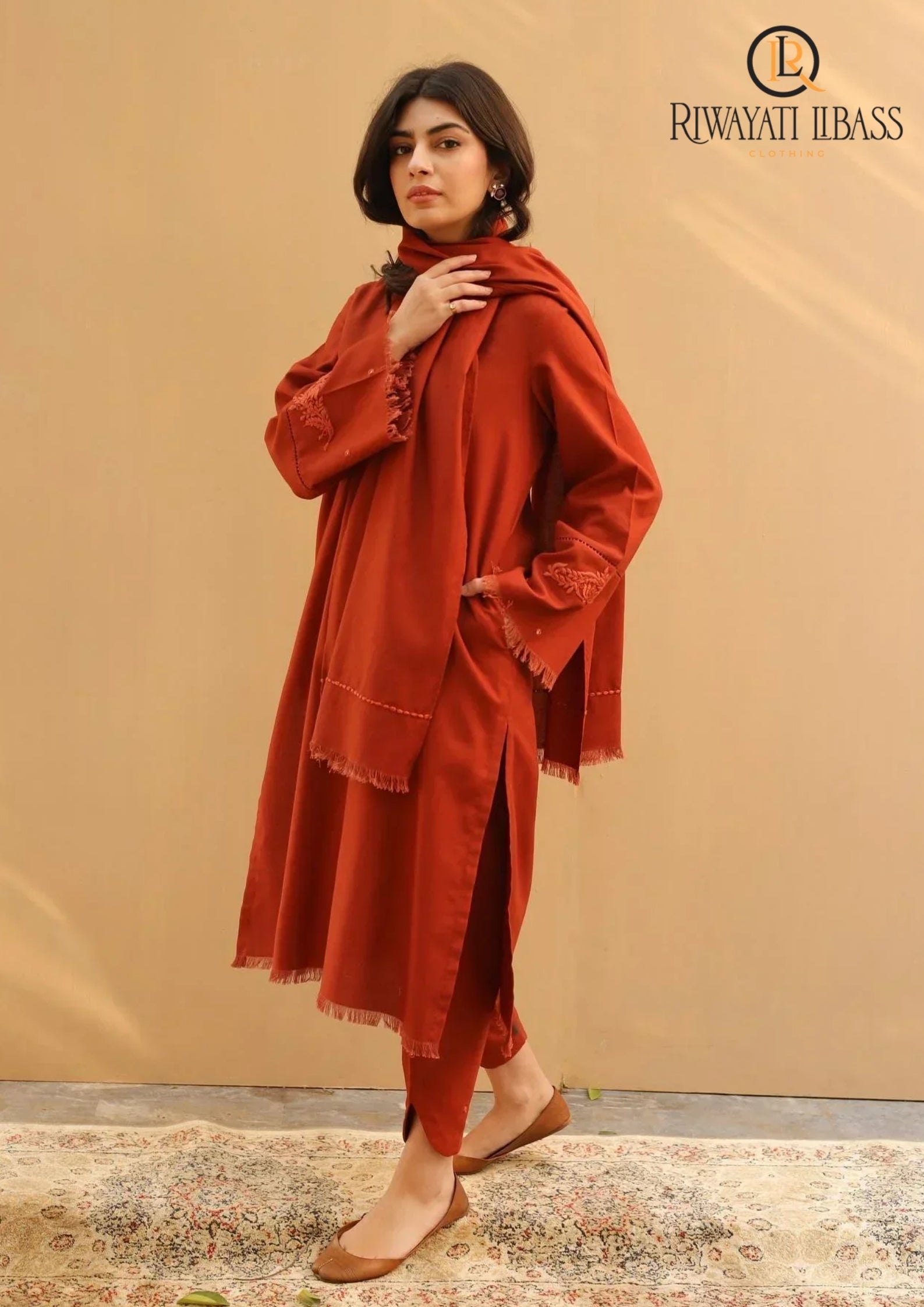 Winter Unstitched 3PCs Embroidered Dhanak Dress With Embroidered Dhanak Shawl RL-652