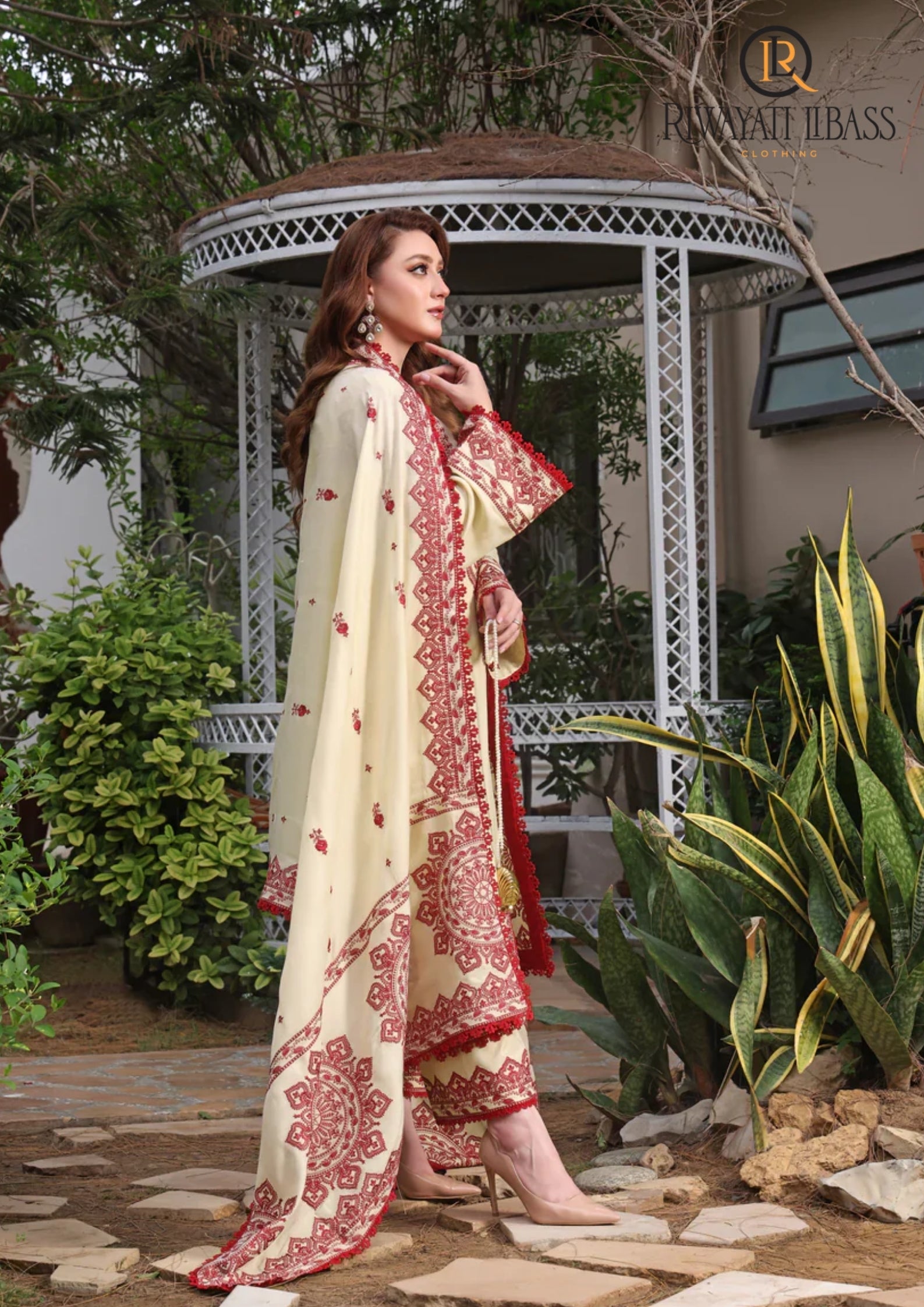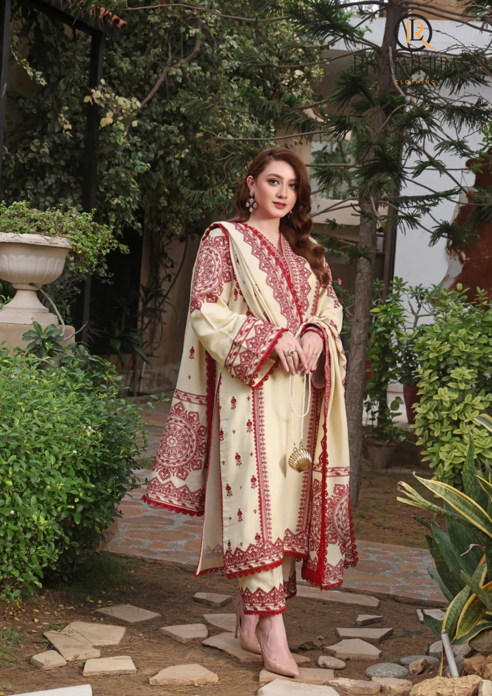 Winter Unstitched 3PCs Embroidered Dhanak Dress With Embroidered Dhanak Shawl RL-686
