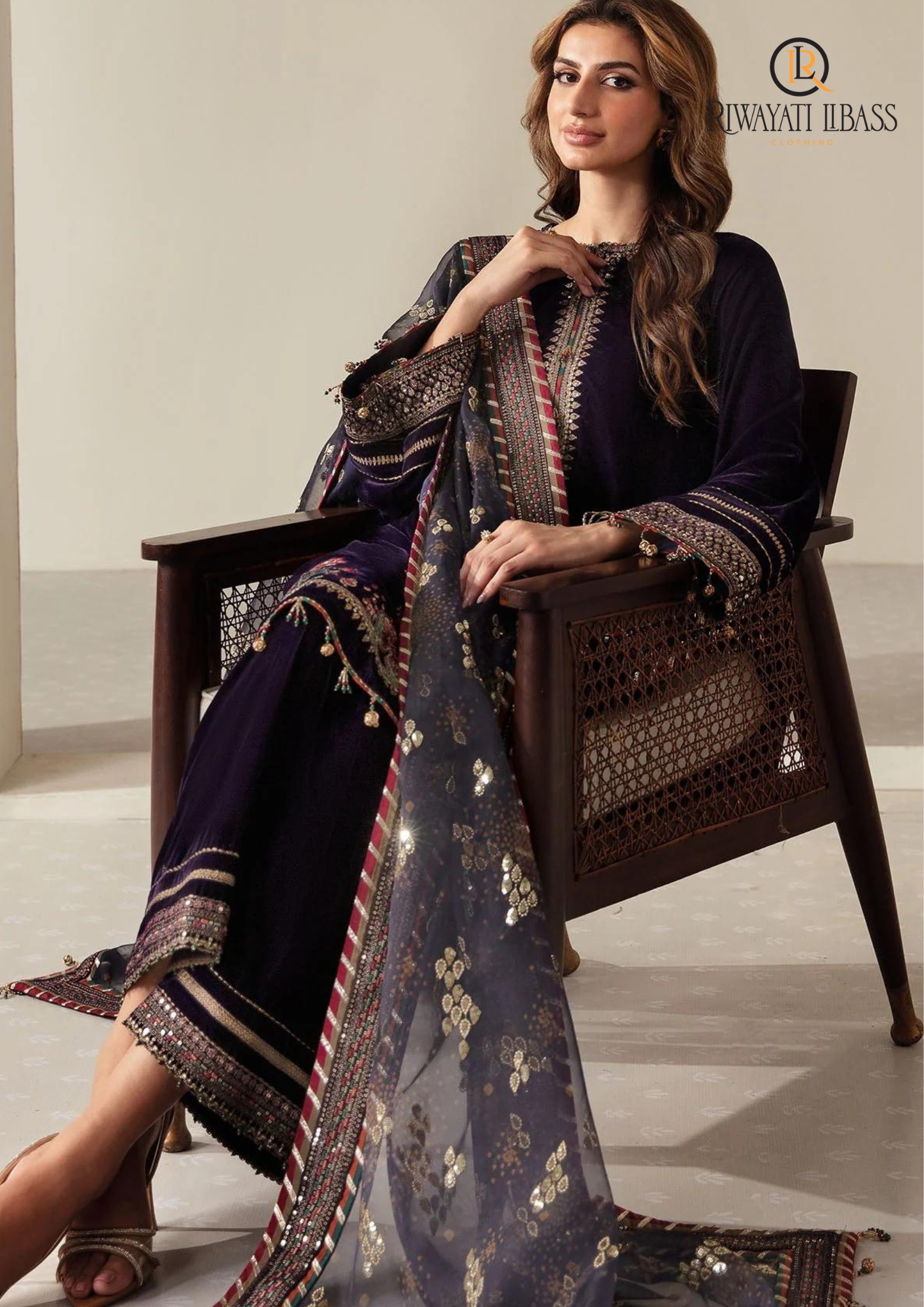 Unstitched 3PCs Embroidered Velvet Dress With Embroidered Organza Dupatta RL-545