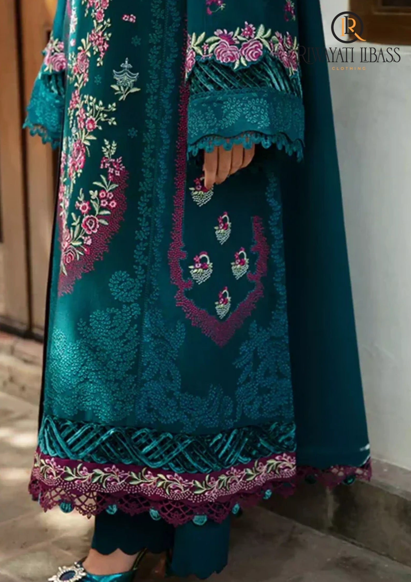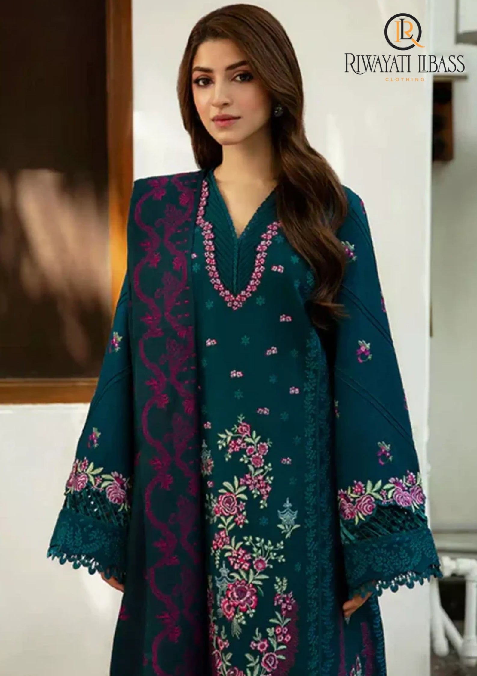 Winter Unstitched 3PCs Heavy Embroidered Dhanak Dress With Digital Printed Karandi Shawl RL-628