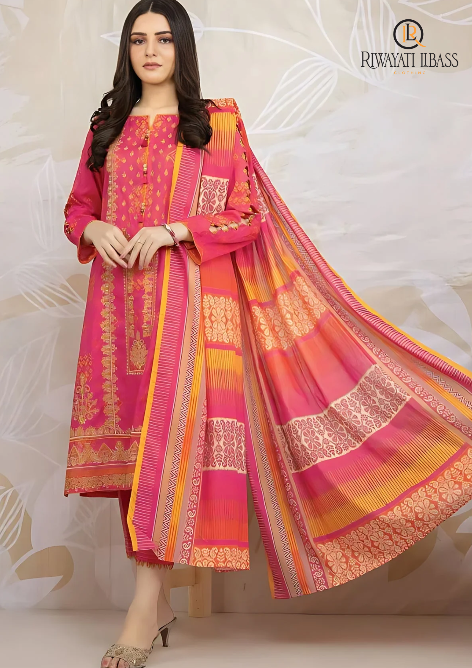Summer Unstitched 3PCs Digital Printed Swiss Lawn Dress With Printed Lawn Trouser RL-284